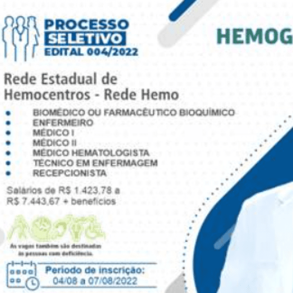 Rede Hemo abre processo seletivo para contratação de profissionais