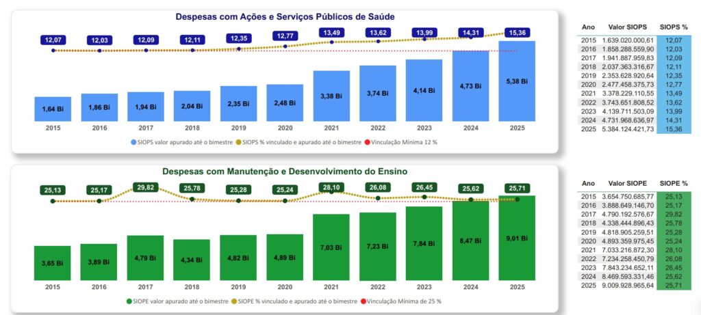 Um dos pilares do encerramento fiscal de 2025 foi o cumprimento e a superação dos limites constitucionais em áreas prioritárias.